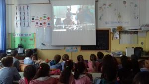 Li abbiamo accolti con molta gioia e con la coreografia preparata sulla canzone SIAMO GATTI inserita nella nostra festa di fine scuola …abbiamo spiegato loro che durante l’anno abbiamo letto la storia di un gatto che si è PRESO CURA di una piccola gabbiana rimasta senza la sua mamma: il gatto Zorba e tutti i gatti del porto sono stati così premurosi e cari con lei che Fortunata, così si chiama la piccola gabbiana, pensava di essere un gatto.